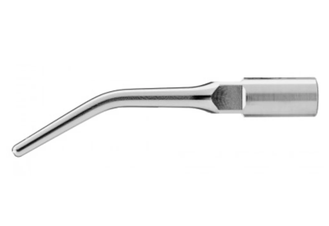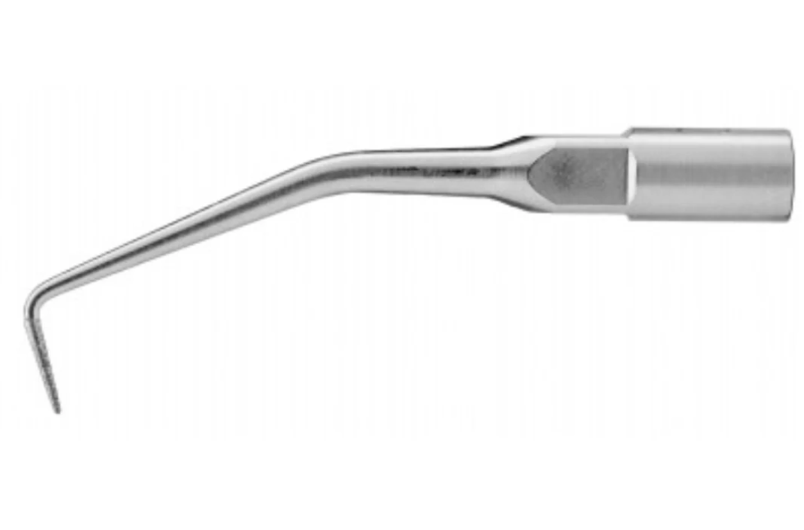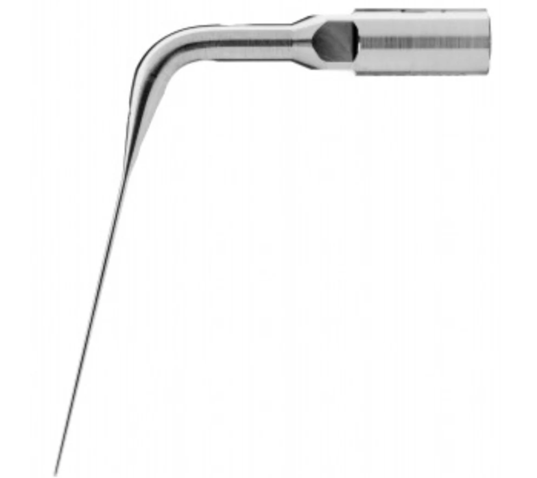 El inserto E6D tiene múltiples funciones y se puede utilizar en endodoncia, periodoncia y odontología restauradora. Su punta en forma de bala, con punta de diamante, permite ajustes precisos. Se utiliza ampliamente para localizar conductos, eliminar obstrucciones coronales, materiales de restauración, calcificaciones, cementos temporales y permanentes, postes, etc. Crea un surco limpio, liso y plano que facilita la localización del conducto. También se puede utilizar para eliminar caries y refinar márgenes y cajas de preparación para restauraciones.